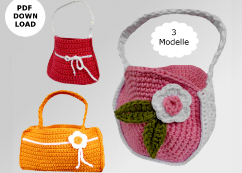 Häkelanleitung für 3 verschiedene Kindertaschen Schwierigkeitsgrad ♥ = leicht