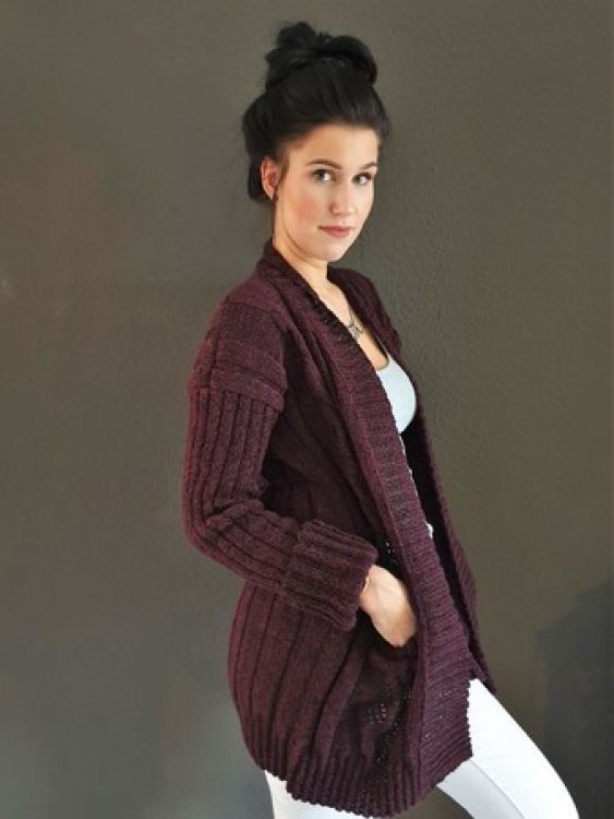 Der Cardigan wird in Teilen gestrickt, daher nicht für Farbverlaufsgarn geeignet.