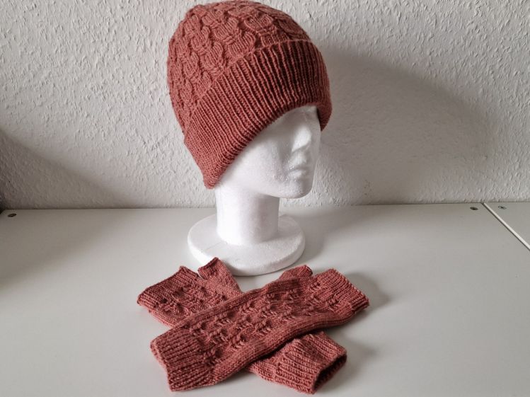 Strickanleitung für das Set aus Mütze und Stulpen "Lydia"