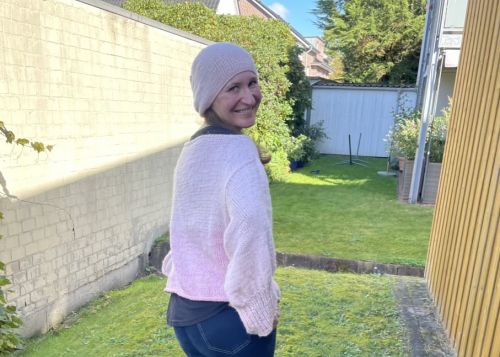 Die Anleitung umfasst auf 5 Seiten die Erklärung, wie der Pullover gestrickt wird, wie die Ärmel angestrickt werden und wie die Longbeanie gestrickt wird.