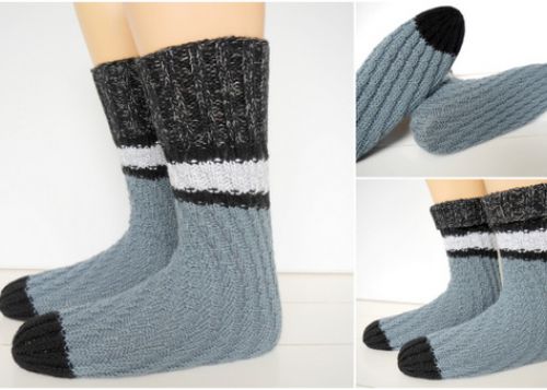 Es sind KUSCHEL- und WOHLFÜHL-SOCKEN für Abende auf der Couch oder als Wellness-Socken, damit man erst gar nicht kalte Füße bekommt. Die Socken sind schnell und einfach gestrickt und auch sehr gut für Anfänger geeignet