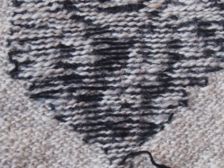 Verarbeitet wurden für die Größe 48-52 17 Knäuel Wolle in weiß mit einer Lauflänge von 60 m/50 g - also 1020 m Schurwolle und 2 Knäuel Wolle in schwarz mit einer Lauflänge von 130 m/50 g - also 260 m Wolle. Gestrickt wurde mit einer Nadel-Stärke 6, so dass sich eine Maschenprobe von 11 M x 17 R auf 10 x 10 cm ergibt.