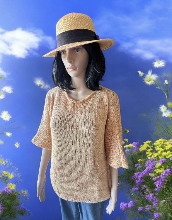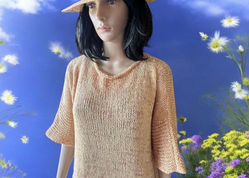 Shirt Bambola ist ein einfach gestricktes Shirt aus Pailettengarn mit direkt angestrickten Ärmeln, die individuell in der gewünschten Länge angepaßt werden können.