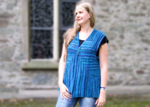 Inklusive Anleitung, wie man eine Tunika strickt; außerdem einem Workshop wie man die Weste oder Tunika länger oder kürzer oder mit dünnerer oder dickerer Wolle strickt.