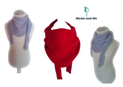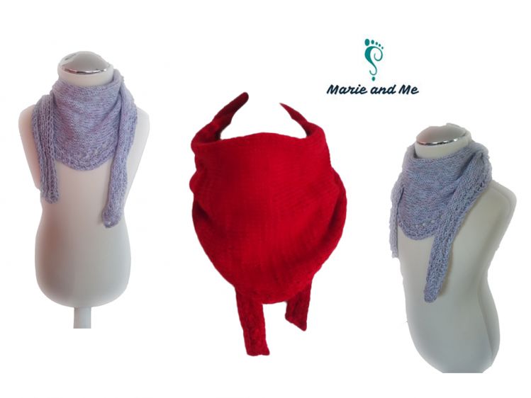 Zudem ist diese Anleitung ideal zur Resteverwertung. Sie können das Tuch mit jeder Art Garn stricken. So ist das abgebildete rote Tuch aus Sockenwollresten von Wollmeise und das lila Tuch aus einem Rest eines Farbverlaufsgarns / Bobbels.