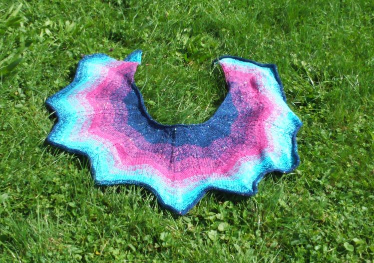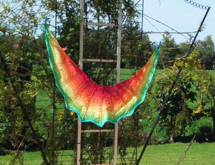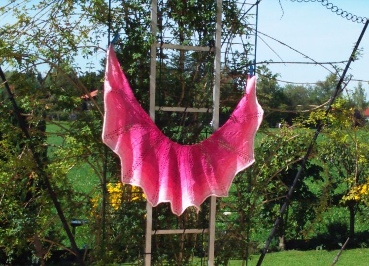 The name finder for this shawl is my 4-year-old granddaughter, who said that looks like a bat. And since I knitted this for her, it became the „little bat“, which also means „Fledermäuschen“ in German.
