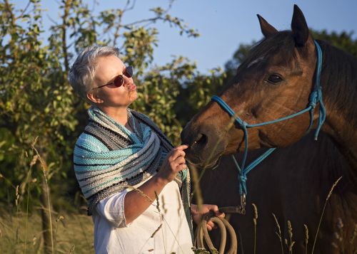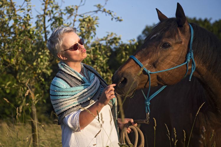 Durch seine sichelförmige Form, die während des Strickens sowohl in der Breite als auch in der Länge langsam wächst, können Sie nach einer beliebigen Reihe das Tuch abschließen. Diese Anleitung beschreibt ein schmales Halstuch, ein großes Tuch, das Sie als Poncho tragen können – und jede beliebige Größe dazwischen. Je nachdem, wann Ihr Garn komplett verstrickt ist oder die von Ihnen gewünschte Größe erreicht ist. Wenn Sie nicht improvisieren möchten, dann finden Sie in dieser Anleitung natürlich auch eine Beschreibung des Tuches, dass in den Fotos gezeigt wird.