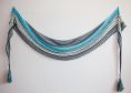 An den beiden Enden des Tuches hängen zwei bunte Quasten. Diese Quasten dienen nicht nur zur Dekoration: Sie sorgen dafür, dass Sie das Tuch – nachdem Sie es um Ihre Schultern drapiert haben- auch an Ort und Stelle bleibt.