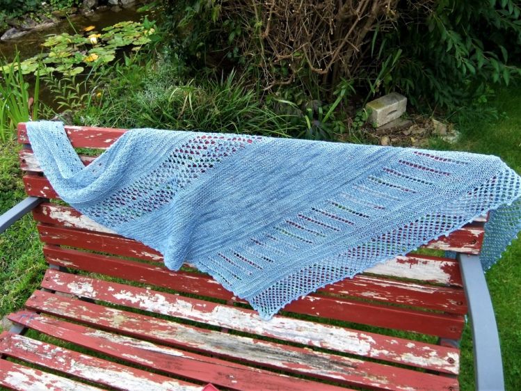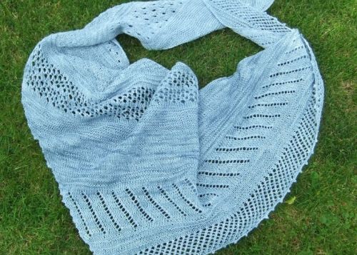 Dieses Tuch ist anfängergeeignet, da es aus rechten, linken Maschen und Umschlägen besteht. Es werden auch noch Maschen zusammegestrickt und überzogen zusammengestrickt.