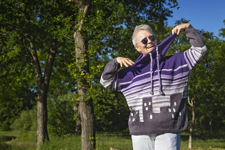 Sollten Sie noch nie einen Motivpullover gestrickt haben, dann ist dies das richtige Projekt für den Anfang. Durch die vielen Farbstreifen ist das Stricken sehr abwechslungsreich. Die einfache Form des Sweaters bereitet auch geübten Anfängern keine Problem – und das Motiv ist mit ein paar Tricks ebenfalls einfach zu meistern.
