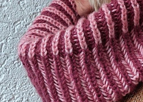 Wir stricken den zweifarbigen Loop "Duoletto" im Halbpatent.