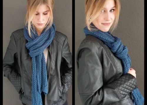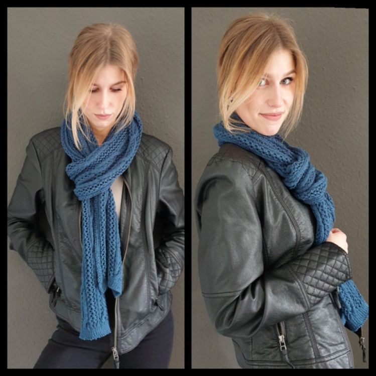 Passt zu meinem Pullover Romina Loch und Zopf habe ich einen Schal gestrickt.