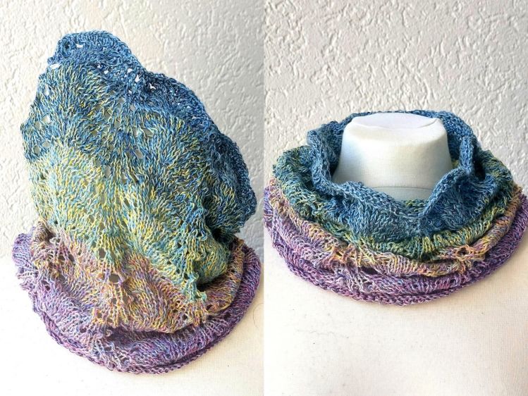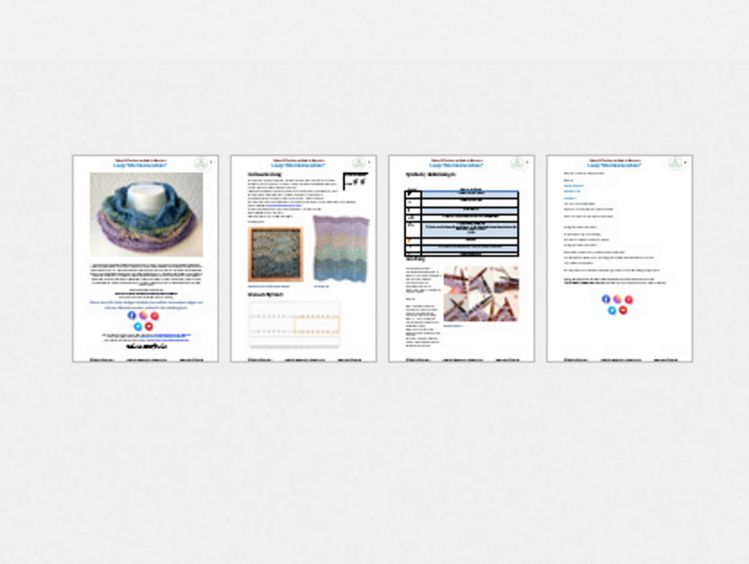 Der Loop Meeresrauschen erinnert mit seinem Wellenmuster an Meer und Urlaub. Er wird von unten nach oben, in Runden gestrickt und kann in der Weite, durch Hinzufügen von Mustersätzen, vergrößert werden. Die Länge kann individuell angepasst werden. Dadurch verändert sich die Garnmenge.