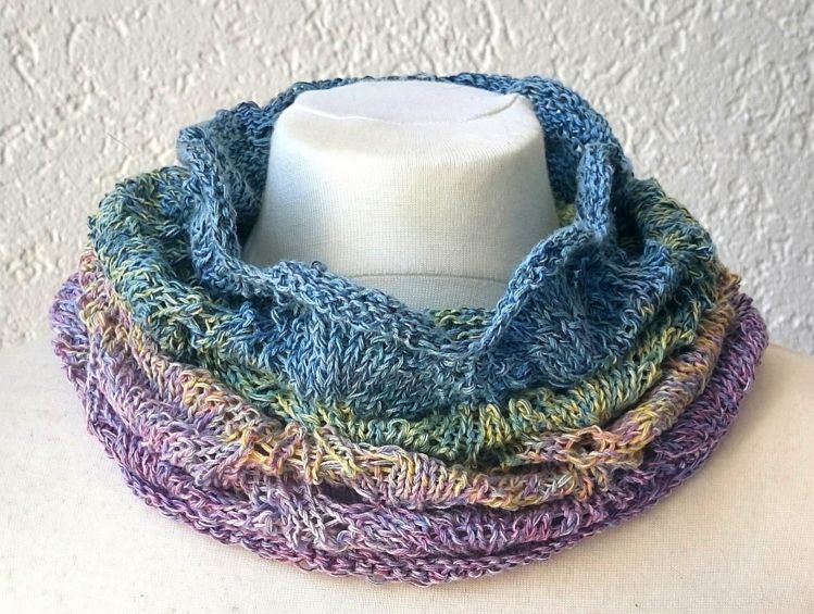* Der Schlauchschal wurde aus dem Kombi-Bobbel 3 von Kreativ mit täschwerk gestrickt und ist in verschiedenen Farben erhältlich: