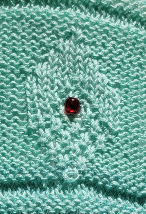außerdem: Maschenmarkierer, 10 Perlen 7 mm, 25 Perlen 4 mm, Schere, Nadel