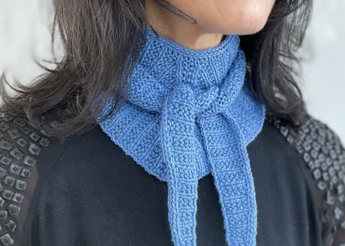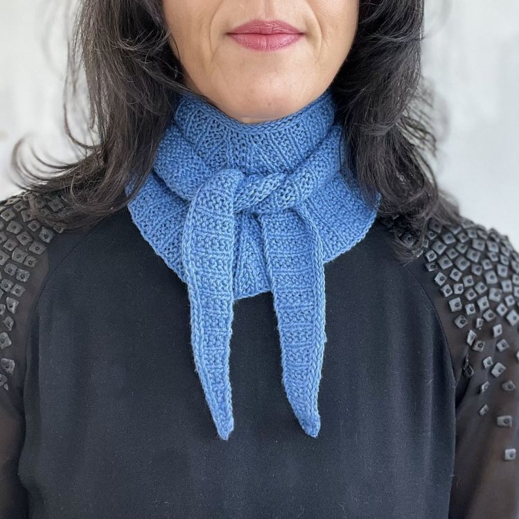Der Betty Scarf ist ein kleiner Schal mit einem interessanten Links-/Rechts-Muster. Er wird von unten nach oben gestrickt. Die Form entsteht durch verkürzte Reihen sowie beim größeren Schal durch mittige Abnahmen. Da sich nach jeder Reihe die Maschenzahl erheblich reduziert, ist er ganz schnell gestrickt. Abschließend erhält der Schal noch einen I-Cord-Rand. Der kleine Schal wird einmal um den Hals gebunden, der große Schal kann zweimal umgebunden werden.
