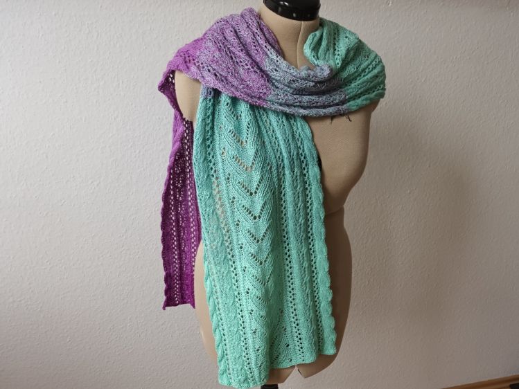 Der Schal wird nach meinen Angaben ca. 28cm breit und 230cm lang.