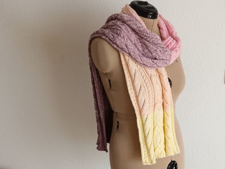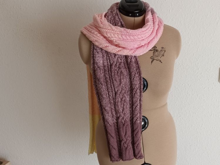 Nach dieser Anleitung kannst Du dir einen wunderschönen, kuschelig weichen und warmen Schal stricken. Er vereint Zopfmuster und Lochmuster in harmonischer Weise miteinander und der absolute Eyecatcher ist der breite keltische Zopf in der Mitte.