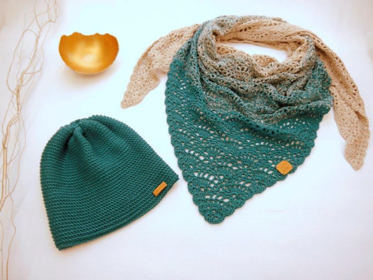 Dieses Set bestehend aus Beanie und Dreieckstuch mit Verlaufsgarn und klarem Design ist das i-Tüpfelchen für jedes Outfit für kühle Temperaturen. Eine gelungene Kombination der Häkelmuster verleiht eine zeitlose Note und sorgt gleichzeitig für einen trendigen Look mit einem prägnanten Akzent.