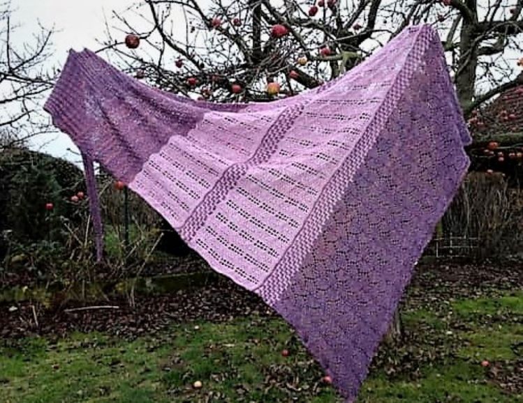 In die lilafarbenen 300g Wolly Wood von Yundi & Grete habe ich beim Hohenloher Wollfest 2018 verliebt und im Dezember 2018 hatte ich endlich die passende Idee für einen riesigen Kuschelschal.