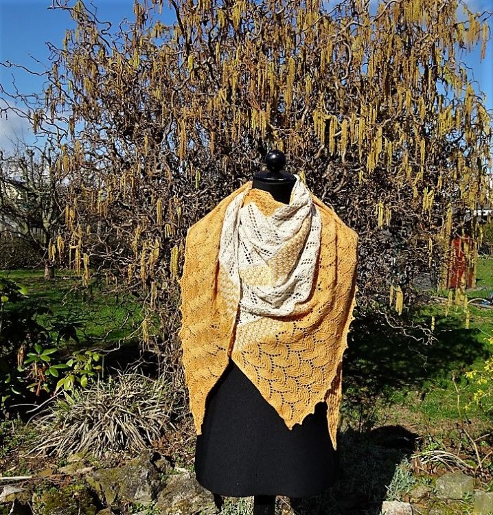 Die 2. Version in orange und Natur ist mit Bamboo Silk gefärbt von Buttjebeyy gestrickt.
