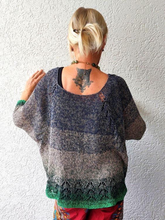 Mein Oberteil hat eine Weite im Umfang ca. 154-156cm., Länge [Schulter bis unteren Saum] ca. 61cm).