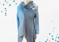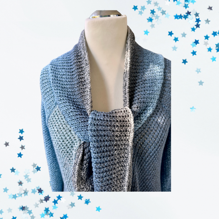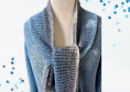 Schalkragen, der vorne mit einem lockeren Knoten geschlossen oder über die Schulter geworfen werden kann