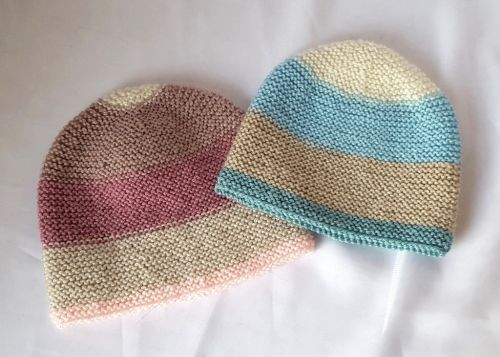 Für eine Mütze werden ca. 25 - 30 g Wolle mit einer Lauflänge von ca. 360 m / 100 g benötigt. Hier wurde Baby Paint von Katia verwendet. Mit einem Knäuel dieser Wolle können 3 Mützen gestrickt werden. Anleitung für 2 Größen: 0 - 6 Monate und 6 - 12 Monate Für Anfänger geeignet, die mit dem Nadelspiel vertraut sind.