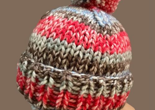 Der Rand kann umgeklappt werden, oder glatt bleiben für eine längere Bommelmütze.