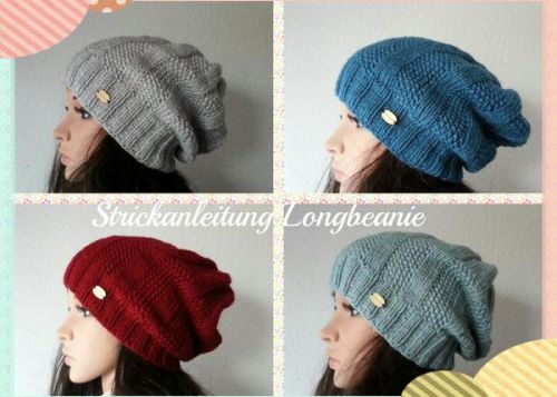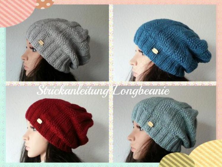 Strickanleitung Longbeanie Muster verschiedene Farben