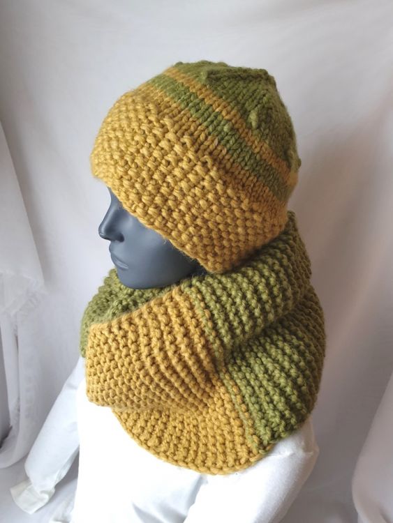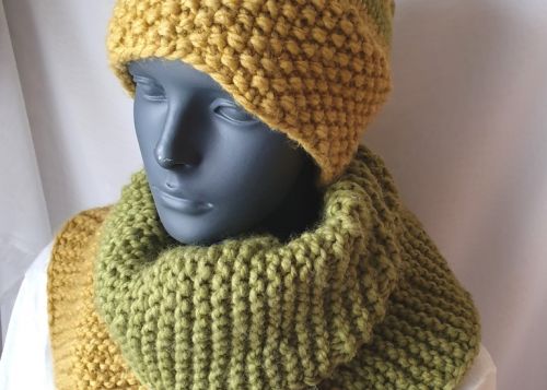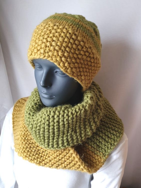 Kuschlig warm und zudem schnell gestrickt ist dieses Set bestehend aus einer Mütze und einem Loop oder Schal Benötigt werden hierfür ca. 450 g Wolle mit einer Lauflänge von ca. 75 m / 100 g. Hier wurde Alaska von Gründl verwendet und mit Nadelstärke 8 und 9 gestrickt. Geeignet für Anfänger mit Grundkenntnissen, die mit dem Nadelspiel vertraut sind.