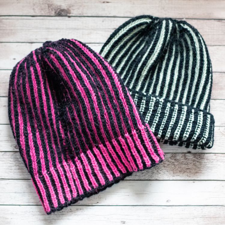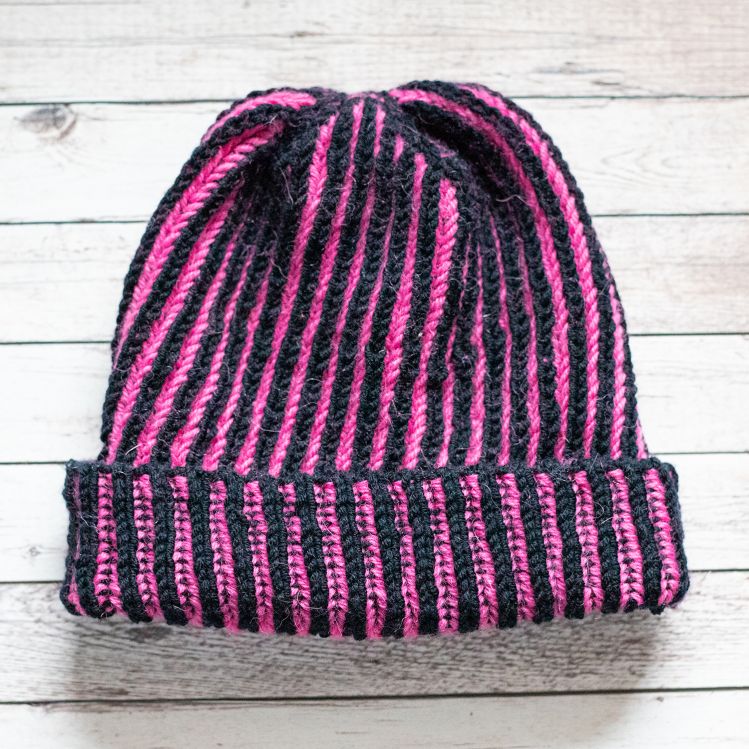Bei der Anleitung handelt es sich um eine Mütze die im zweifarbigen Patent gestrickt wird. Gleichwohl kann die Mütze natürlich auch einfarbig gestrickt werden.