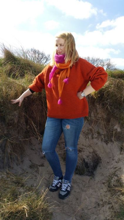 Gestrickt wurde der Pullover aus Semilla Grosso (100% Öko-Schurwolle 80m/50g) von BC-Garn. Die Rohwolle stammt aus Deutschland. Dieser Pullover wird von oben nach unten gestrickt.