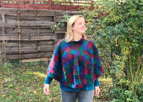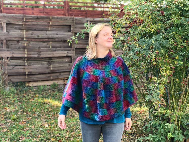 Die Arbeit ist an die 10-stitch-Technik angelehnt, d.h. du hast nie mehr als 10 Maschen auf der Nadel. Durch das Farbverlaufsgarn entsteht dann dieses sensationelle Muster.