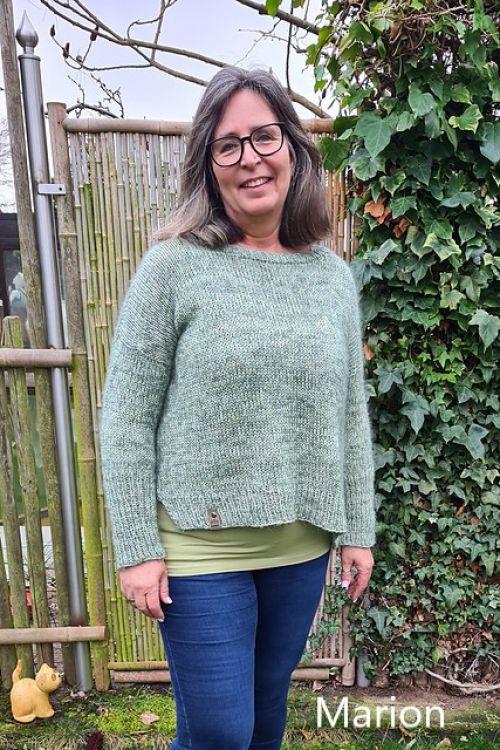 Verwende alternativ ein entsprechend dickeres Garn, um einfädig zu stricken, oder eine Kombination verschiedener Qualitäten, mit denen Du die angegebene Maschenprobe erreichst. Bitte beachte, dass bei Verwendung anderer Garne der Pullover u. U. kein Leichtgewicht mehr ist.