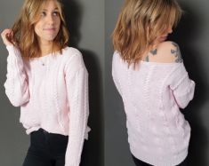 186 Strickanleitung Pullover Wendepullover Zopfmuster Rosa