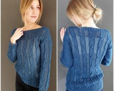 202 Strickanleitung Pullover Lochmuster Zopfmuster Angela