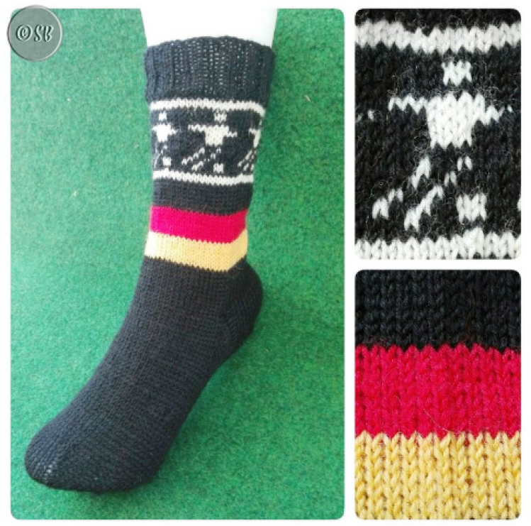 - ausgelegt für 32 Maschen (für Stricksocken mit insg. 64 Maschen)