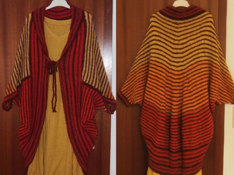 Den Schnitt für diesen Seelenwärmer habe ich so modifiziert, dass er an den wichtigen Stellen die nötige Weite hat und trotzdem die unschlagbare Einfachheit eines Seelenwärmers erhalten bleibt.
