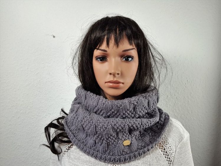 Fertige Maße: Grauer Schal: Breite: 35 cm, Umfang 70 cm, Höhe 39 cm Blauer Schal: Breite 35cm, Umfang 70 cm, Höhe 43 cm Materialangaben: Grauer Schal: 140g Lisa Gründl Premium grau 50g= 133m Nadelstärke 3-4 10x10cm = 21M 28R