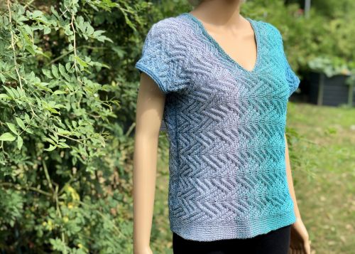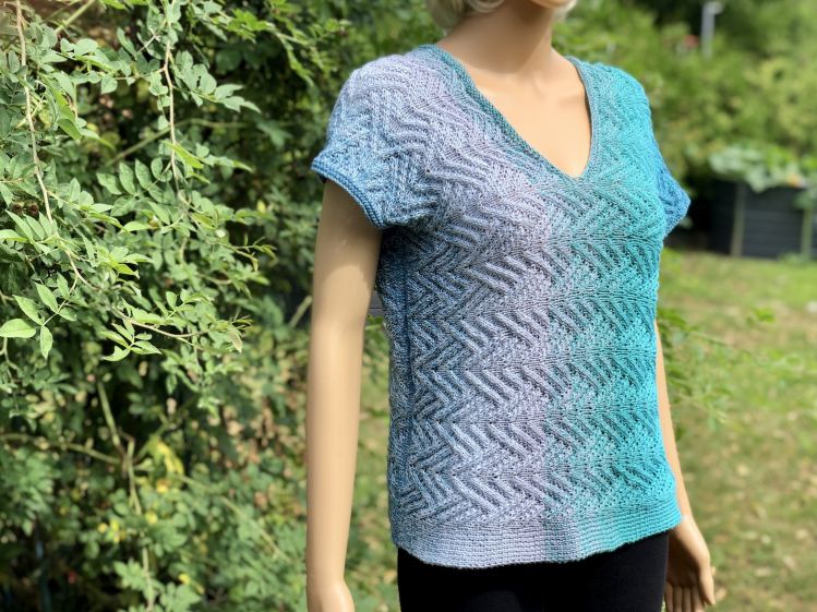 Verzopfte Maschen geben dem Shirt eine schöne Struktur.