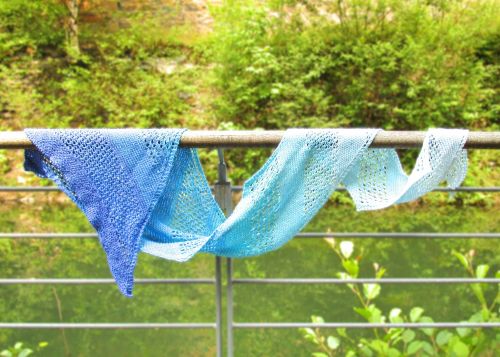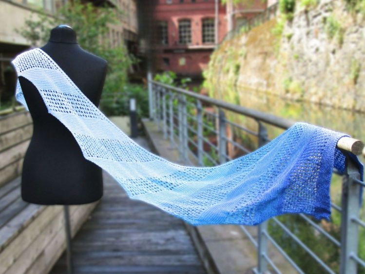 Das Siljana Tuch entsteht aus einer Kombination von zwei einfachen Lacemustern und Kraus-Rechts-Gestrick.