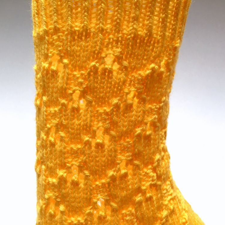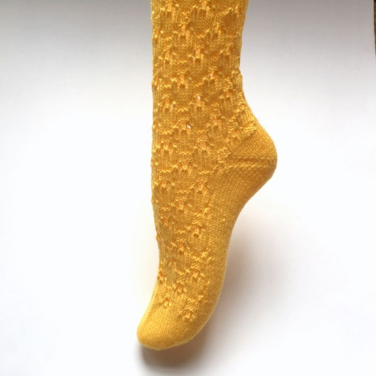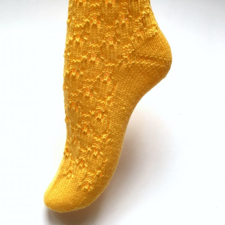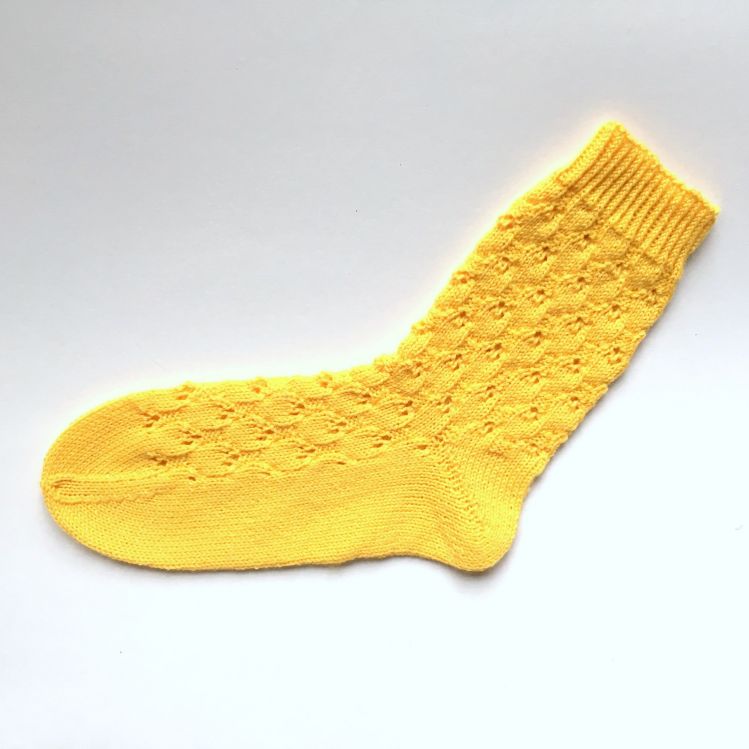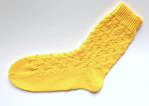 Sonnenschein für die Füße. Passend zum frühlingshaften Wetter gibt es luftige Socken, die durch die kleinen Löcher für einen Temperaturausgleich sorgen. Wenn du den Schaft kürzer strickst hast du schicke Sneakersocken. Das Muster ist wunderbar einfach, das kann auch eine Anfängerin schaffen.