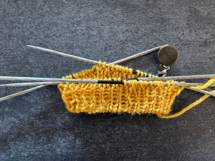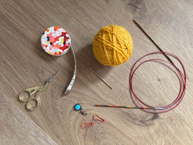 Benötigt wird: 4fach Sockenwolle (400-420m/100g), 1 Rundenmarkierer, 2 Maschenmarkierer, Rundstricknadel oder Nadelspiel 2,0 oder 2,5 (je nach Maschenprobe), 1 Wollnadel zum Vernähen