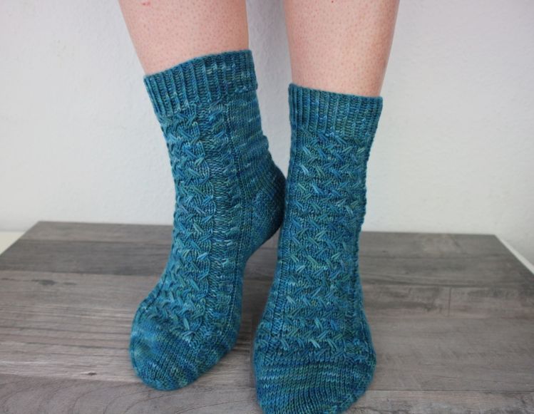 -Garn: 1 Strang handgefärbte Sockenwolle (80% Schurwolle, 20% Polyamid), LL 425m / 100g
