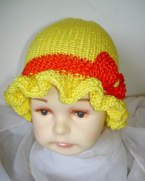 Ohne Schleife können das Hütchen natürlich auch Jungs tragen.