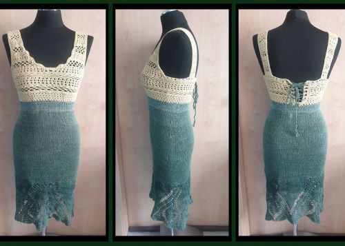 Das Kleid ist eines meiner Entwürfe, die Häkelschrift wurde ebenfalls von mir geschrieben