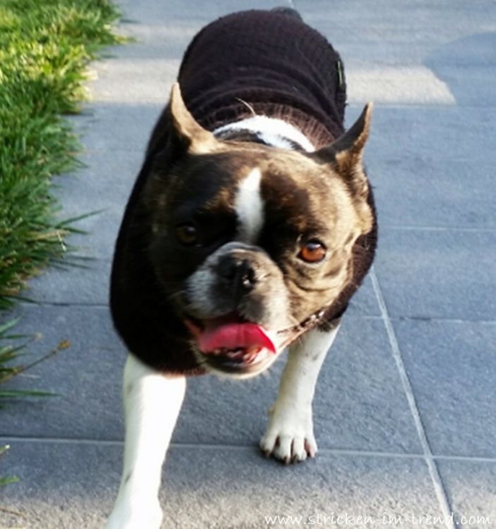 Dank der elastischen Merinoqualität passt er sich wunderbar an – und eignet sich nicht nur für Französische Bulldoggen, sondern auch für ähnlich große Hunde.