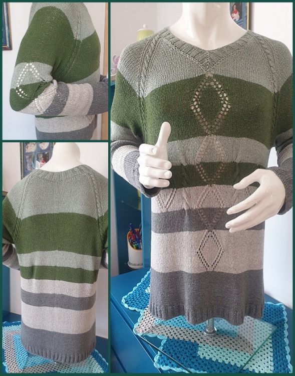 Ein schicker Sommerpulli mit raffiniertem Rautenmuster vorne und an den Ärmeln