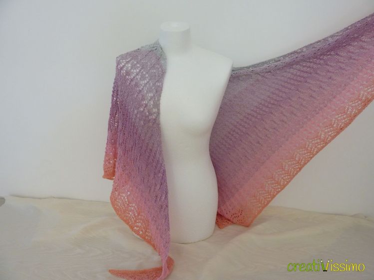 Das Tuch "Mix-it!" fällt durch seine verschiedenen Lacémuster, die der Form des Tuches angepasst sind, gleich ins Auge. Sie lassen das Tuch filigran wirken.